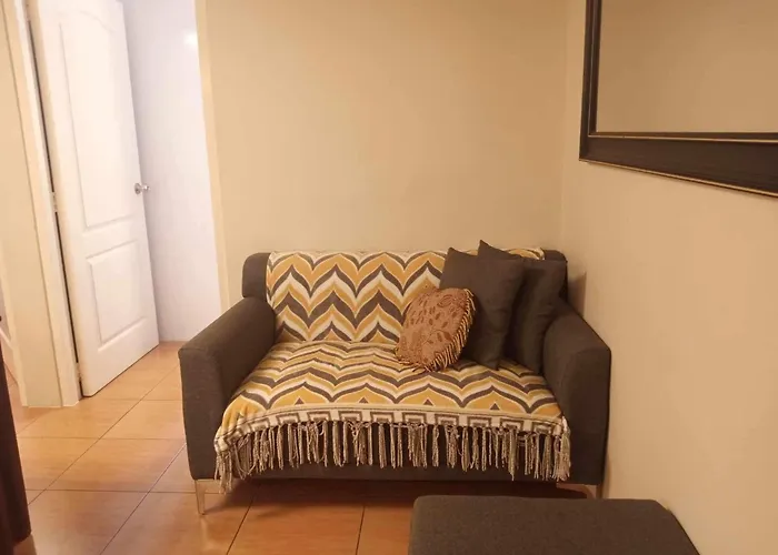 This apartment has a fully equipped kitchen, and comforts such as air conditioning.